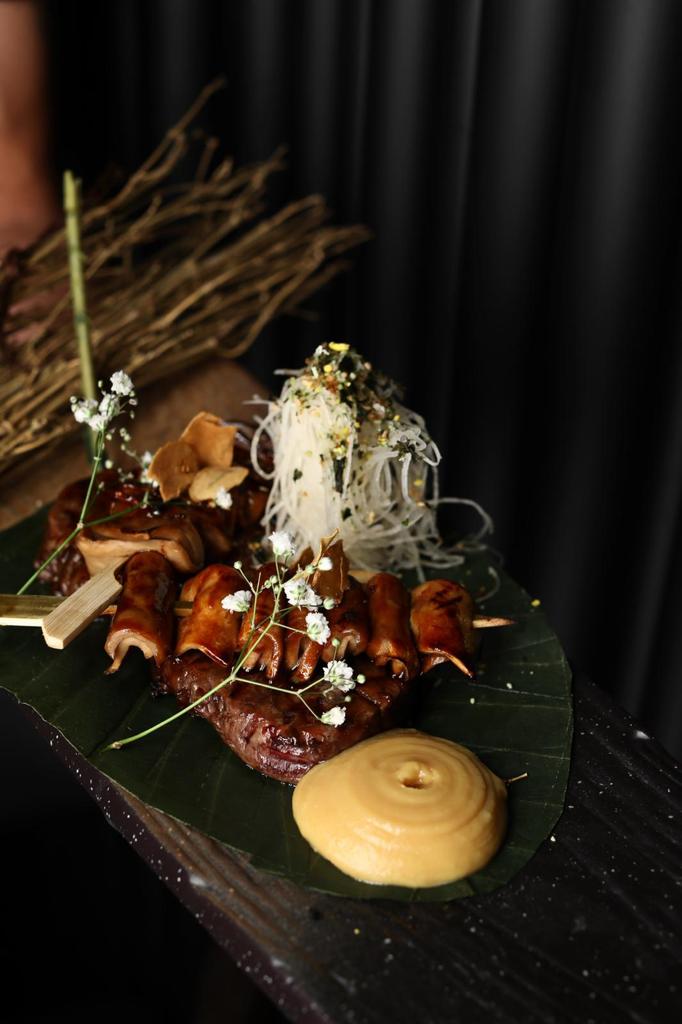 Pan Fried Crispy Rice, Creamy Gucamole, Greilled Wagyu Beef, Fried Garlic Chips, Jalapino